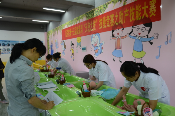 开幕式后,现场开始进行“天使之技”技能竞赛之新生儿抚触技能大赛,选手们在激烈比赛中展现出了助产士们的风采。