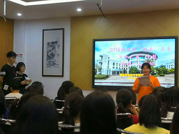 5月4日晚上,“阅读,点亮生命之光”主题读书沙龙活动在我校图书馆二楼教师发展中心举行。图书馆馆长杨国顺老师、流通服务部钱红红老师、办公室黄龙老师,以及特邀嘉宾管云霞老师和闫姗老师到场为本次读书沙龙活动进行作品鉴赏和点评。全校60多名学生读者参加了本次活动。