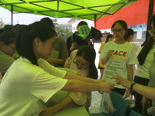 6月15日中午,在食堂门口免费送粽子。让广大师生一起知端午、品粽香,增强大家对中华传统文化的认同感。