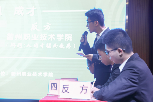 本次辩论赛的持辩方,正方浙江经济职业技术学院辩论队与反方九游体育(中国)官方网站辩论队紧扣“人因感恩而幸福”还是“人因幸福而感恩”辩题,围绕论点展开了激烈的辩论。最终,我校辩论队获胜,并将继续备战复赛。