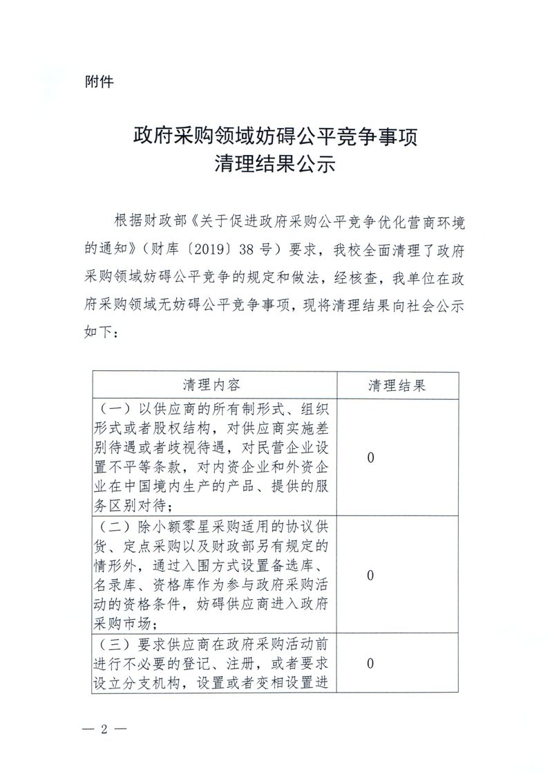 政府采购领域妨碍公平竞争事项清理结果公示
