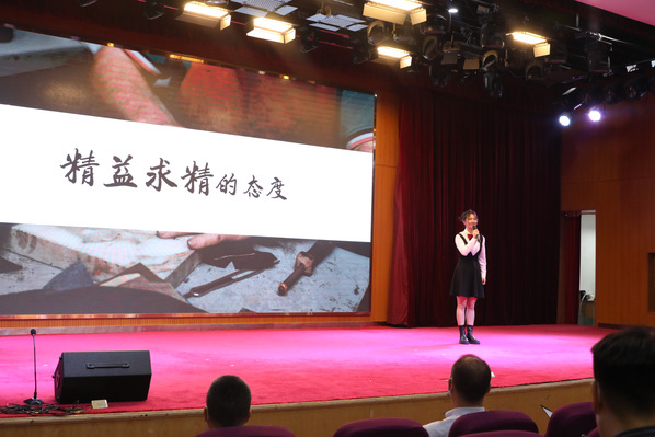 近日,九游体育(中国)官方网站2022年职业教育活动周暨信息工程学院数字文化节隆重开幕。学校将以职业教育活动周为契机,进一步聚焦“提高质量,提升形象”,铆足心气、攻坚克难,着力推动内涵发展,切实提高办学质量,努力建成“双高”院校,为衢州社会经济发展提供更多高质量技术技能型人才,为四省边际中心城市共同富裕示范区建设做出新的贡献。图为该校“00”新时代理论宣讲员叶敏欣同学在思政微课上宣讲《弘扬工匠精神·争做职教新青年》。