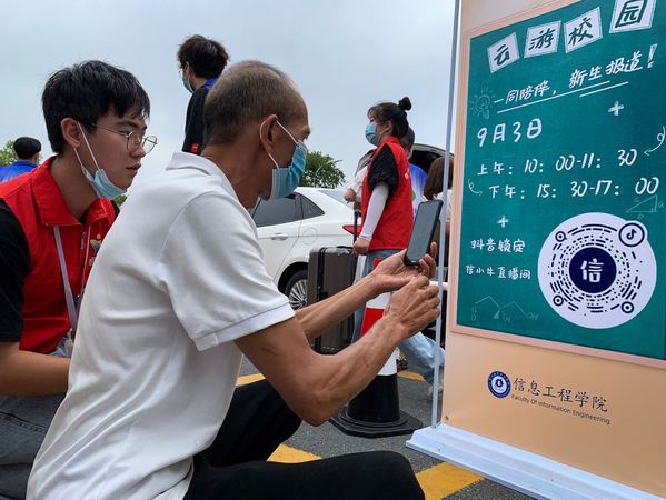 开播前,辅导员老师对整个团队进行了直播讲解、拍摄、采访等全面培训,制作了流程清单、任务清单、职责清单,并在当天安排了专门的志愿者引导校门外的家长扫码观看直播。