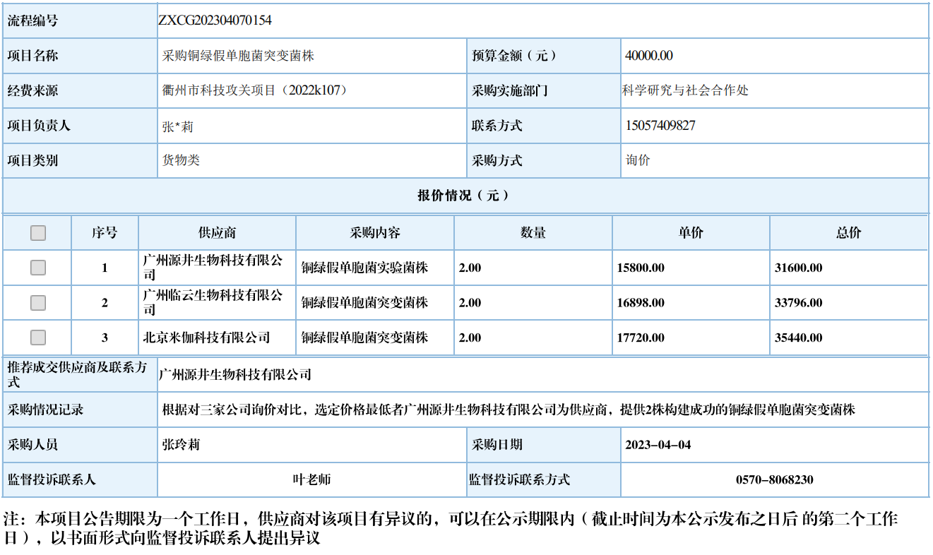九游体育(中国)官方网站铜绿假单胞菌实验菌株自行采购信息公示