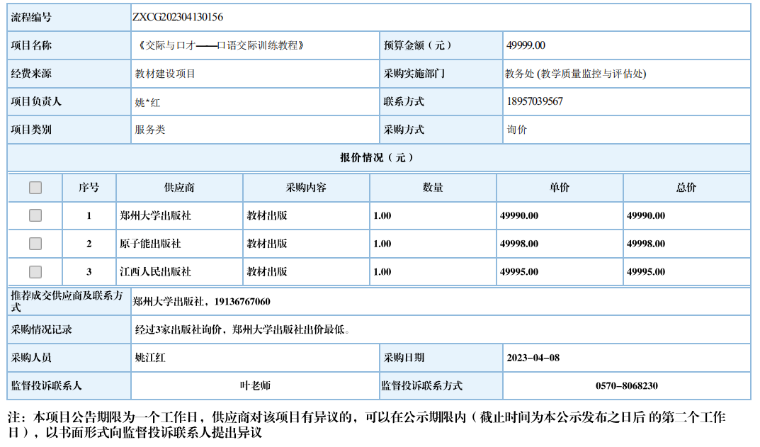 九游体育(中国)官方网站《交际与口才-口语交际训练教程》自行采购信息公示