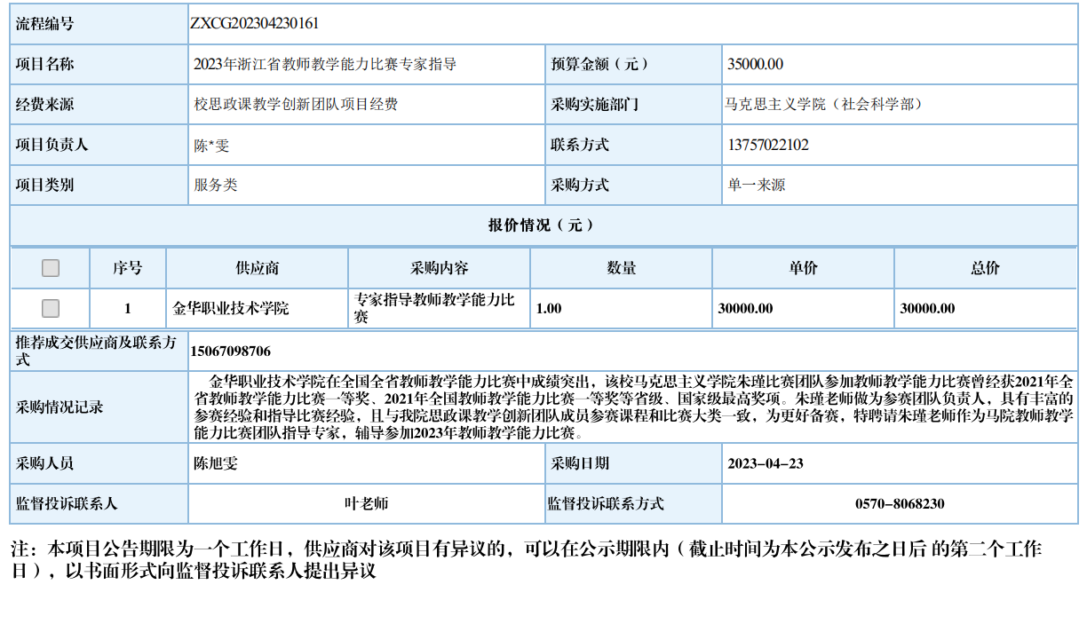 九游体育(中国)官方网站2023年浙江省教师教学能力比赛专家指导自行采购信息公示