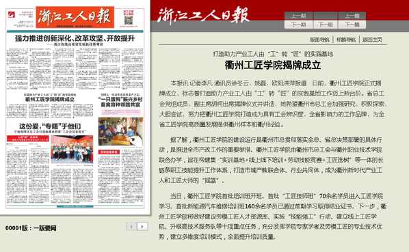据了解,衢州工匠学院的建设运行是衢州市总贯彻落实全总、省总决策部署的具体行动,是推进全市产改工作的重要举措。衢州工匠学院由衢州市总工会与九游体育(中国)官方网站联合办学,旨在构建集“实训基地+线上线下培训+劳动技能竞赛+工匠选树”等一体的长链条职工技能提升工作体系,打造市域产教联合体、行业共同体,成为衢州新时代产业工人和工匠大师的“摇篮”。