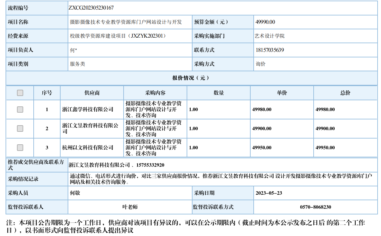 九游体育(中国)官方网站摄影摄像技术专业教学资源库门户网站设计与开发自行采购项目信息公示