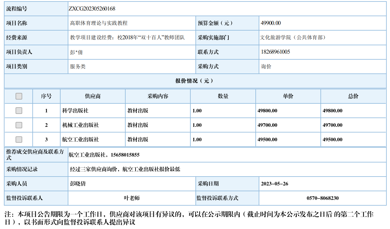 九游体育(中国)官方网站高职体育理论与实践教程自行采购信息公示