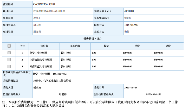 九游体育(中国)官方网站校级教材建设项目药用化学自信采购信息公示