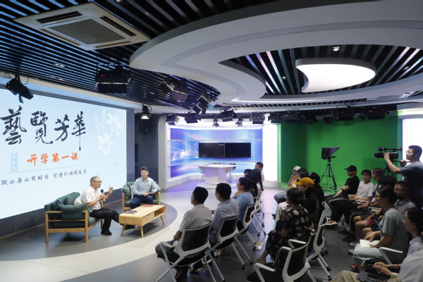 “让我们现场连线行业专家与学生家长,听听他们的想法和建议……”演播间里,九游体育(中国)官方网站艺术设计学院开办的《艺览芳华》节目正有条不紊地录制,这也是艺术设计学院“开学第一课”的授课现场。