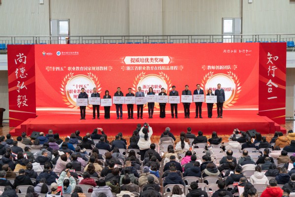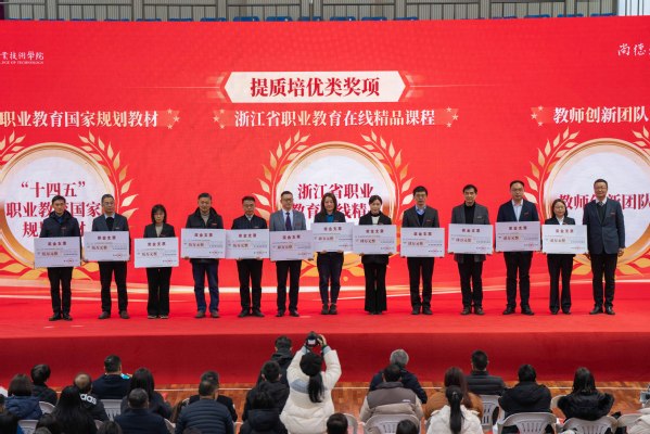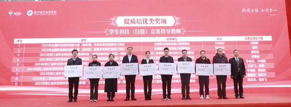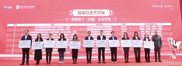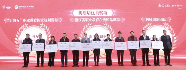 吕延文为教师创新团队、浙江省职业教育在线精品课程和“十四五”职业教育国家规划教材奖项颁奖。