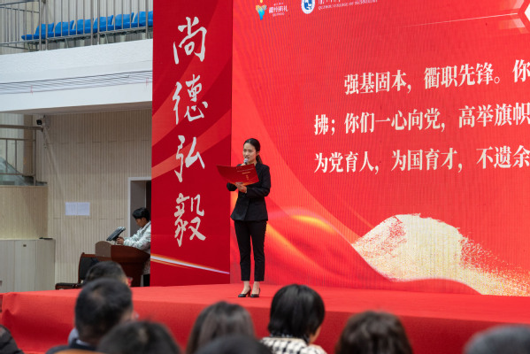 何百通为教师教学(技能)竞赛奖项颁奖。