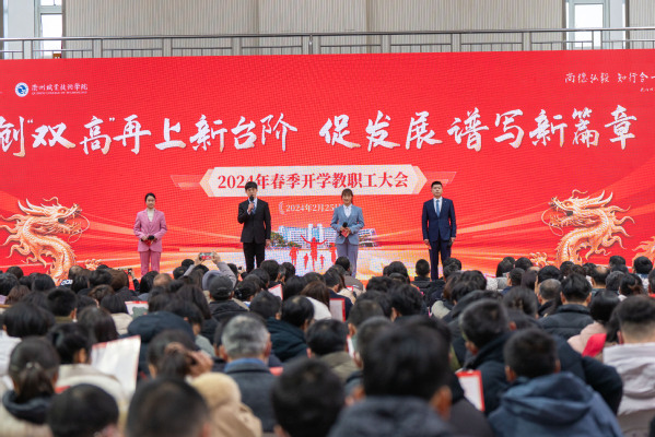2月25日下午,我校召开2024年春季开学教职工大会,表彰先进,激励广大教职员工坚定信心、铆足干劲,推进“双高”建设再上新台阶。党委书记徐须实出席并讲话,党委副书记、校长吕延文部署2024年重点工作,党委副书记何百通,党委委员、纪委书记方焕云,党委委员、副校长余建军、徐浪静、姚水洪,党委委员、宣传部部长孔庆红,党委委员、组织部部长周帅出席,全校教职员工参加。