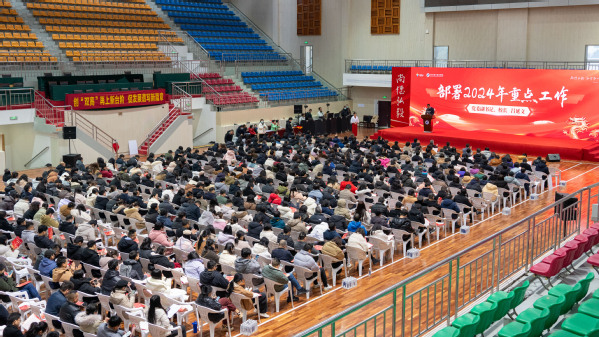 吕延文强调,2024年学校要以党的二十大精神和习近平考察浙江的重要讲话精神为指引,在省委省政府、市委市政府的领导下和省委教育工委、省教育厅的指导下,坚持党对学校工作的全面领导,落实立德树人根本任务,围绕创“双高”、强服务、育人才工作主线,聚焦高质量发展、可持续发展,实施“六个发展”行动,凝心聚力、踔厉奋发,为衢州建设具有强大吸引力、辐射力、带动力、引领力的四省边际中心城市贡献更多衢职力量。他围绕坚持党建领航发展、坚持创新发展、坚持内涵发展、坚持融合发展、坚持开放发展、坚持健康发展等“六个发展”对我校2024年重点工作作了部署。