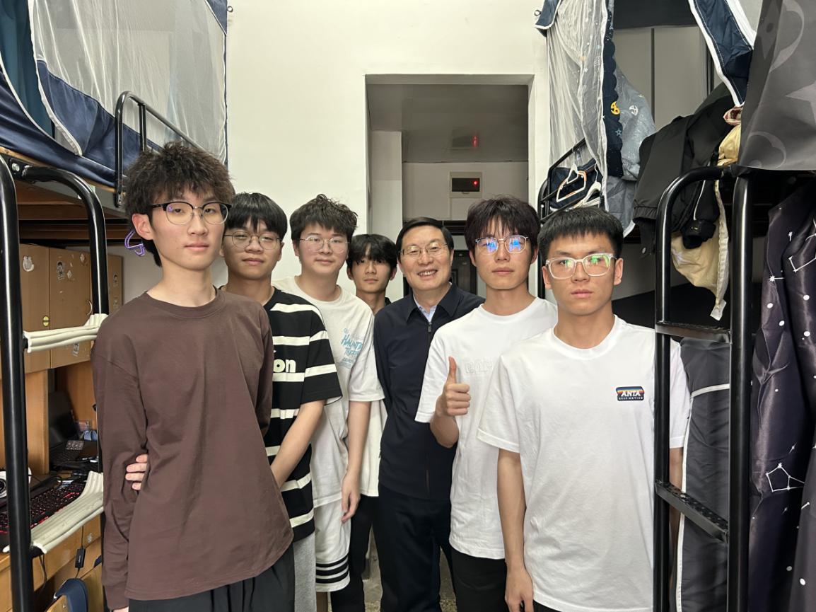 在5324寝室,徐须实与同学们进行了亲切的交谈,倾听了同学们入学近一年的体会感悟,了解了同学们的思想动态、学习规划、生活情况与获奖情况。他说,作为学校首届中医学专业学生,同学们幸运又责任重大,希望大家努力学习中医专业知识,涵养高尚职业素养,以“不为良相,便为良医”的责任使命,传承发扬好博大精深的国医精粹。他希望同学们积极参加学校各类活动,加强体育锻炼,提升能力、强健体魄,找到适合自己的发展赛道,努力实现个人成长、成才、成功。