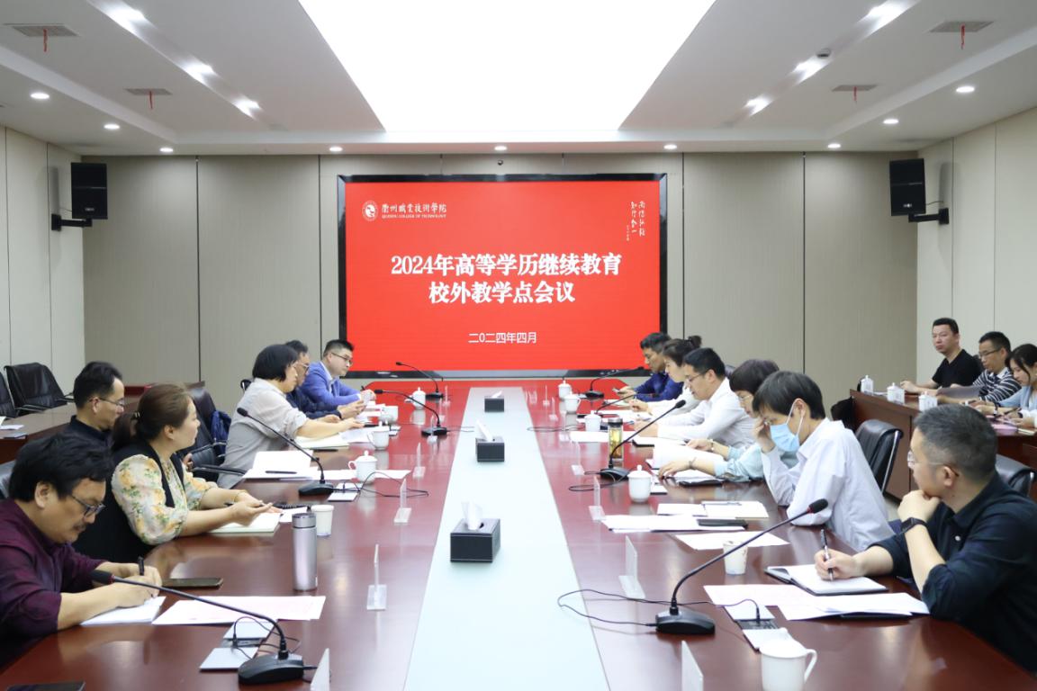 为贯彻落实国家关于规范高等学历继续教育相关文件精神,提升校外教学点办学质量,促进学校高等学历继续教育事业发展,4月16日下午,学校召开2024年度高等学历继续教育校外教学点工作会议,校党委委员、副校长徐浪静,科学研究与社会合作处处长周明安、继续教育学院学历科成员及全省12家校外教学点代表参加会议,会议由继续教育学院院长戚景云主持。