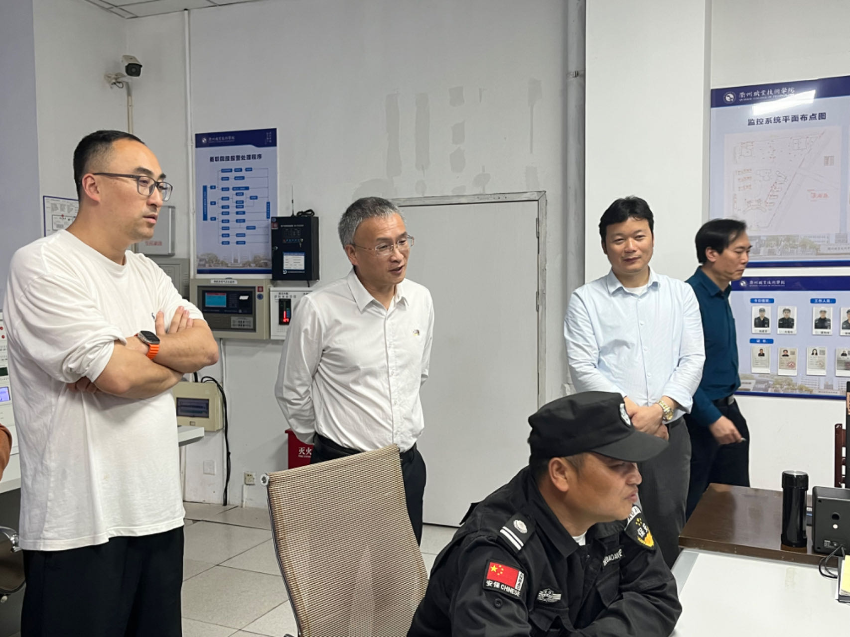 何百通一行实地走访了南门门岗、西门岗、消监控室和学生公寓等重点场所,对校内消防设施、安全管理制度、一键报警系统运行、保安登记备案制度、监控设施、节假日值班安排等情况进行了全面细致的检查。