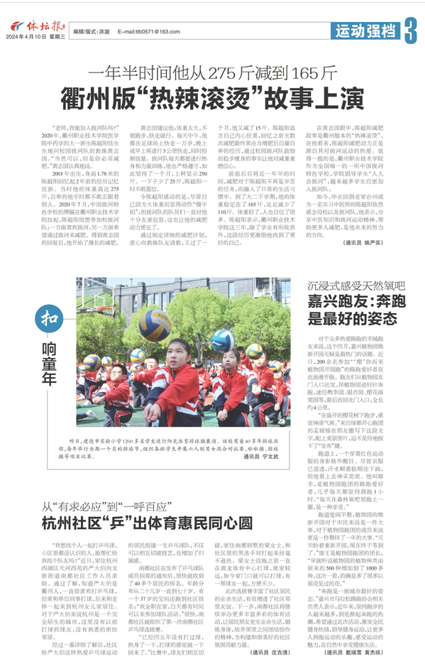 在黄志国眼中,陈超阳减肥故事是衢州版本的“热辣滚烫”,在他看来,陈超阳减肥动力正是源自其对拔河运动的热爱。值得一提的是,九游体育(中国)官方网站作为全国唯一的一所中国拔河特色学校,学院倡导学生“人人会拔河”,越来越多学生自愿加入拔河队。