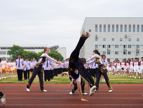 参赛队伍逐一登台。每个队伍在动感音乐的带动下,以精准默契的配合和充满活力的动作,描绘出青春最亮丽的色彩。