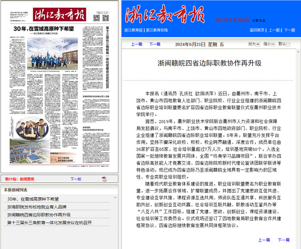 《浙江教育报》头版 2024年6月21日 报道 通讯员 孔庆红 欧阳洪萍