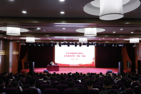 6月25日下午,我校组织开展党纪学习教育专题党课暨警示教育,党委书记徐须实作题为《正本清源服务立德树人、正风肃纪护航“双高”建设》的党纪学习教育党课报告,党委副书记、校长吕延文主持,党委副书记何百通,党委委员、纪委书记方焕云,党委委员、副校长余建军、徐浪静、姚水洪,党委委员、宣传部部长孔庆红,党委委员、组织部部长周帅出席。
