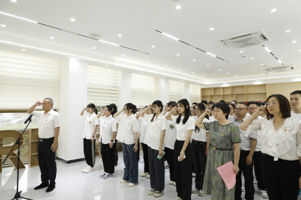 7月1日下午,我校在新落成的党群服务中心举办“七一”新党员代表集中入党宣誓活动,为新加入党组织的党员代表举行入党宣誓仪式,老党员重温入党誓词。党委副书记何百通出席并讲话,党委委员、组织部长周帅主持,各二级学院党总支书记(负责人)、组织员,新党员代表和组织部工作人员参加。