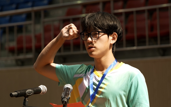 我校地掷球队队员毛吴坤代表全体运动员宣誓。
