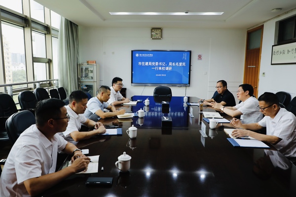 7月9日下午,市住建局党委书记、局长毛爱民,党委委员、建设中心主任姜平一行到校调研新校区项目建设,校党委书记徐须实,党委委员、副校长余建军,新校区建设专班办公室负责人陪同。