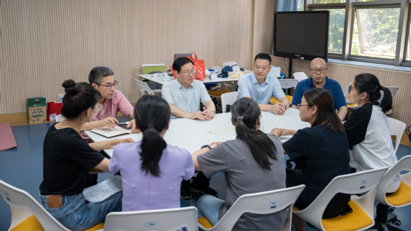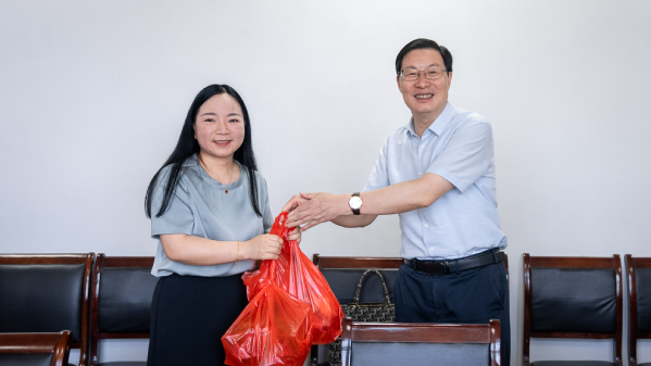7月22日,校党委书记徐须实走访慰问暑期在校筹备教学能力比赛的团队老师,校党委委员、副校长姚水洪,办公室主任倪立宠,教务处长王建陪同.
