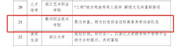 近日,浙江省教育厅公布教育助力高质量发展建设共同富裕示范区典型案例名单。由我校继续教育学院申报的《聚力共富,倾力打造四省边际高素质劳动者队伍》经专家联评、省教育厅党组会审议,成功入选教育助力高质量发展建设共同富裕示范区27个高校典型案例之一。