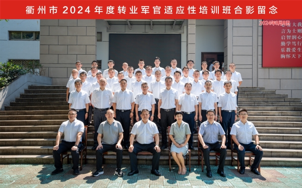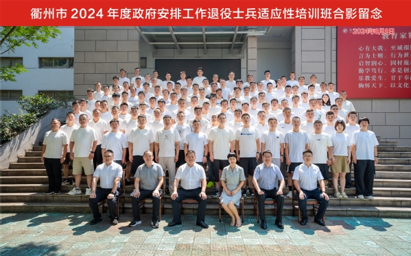 近日,衢州市2024年度转业军官和政府安排工作退役士兵适应性培训在我校成功举办。衢州市退役军人事务局党组成员、副局长郑国平,安置军休和就业创业处处长刘石青,我校党委委员、副校长徐浪静出席开班仪式并作训前讲话。开班式由继续教育学院院长戚景云主持,各县市区的37名转业军官和109名转业士官参加了本次培训。