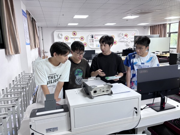 图为邵思程在讲解锂电池检测设备使用步骤。受访者供图