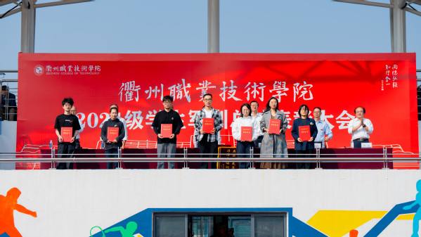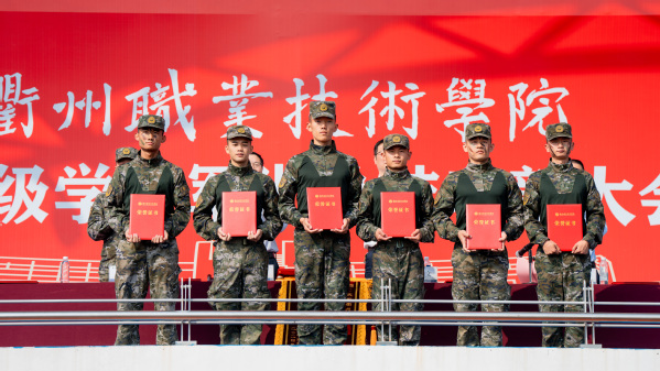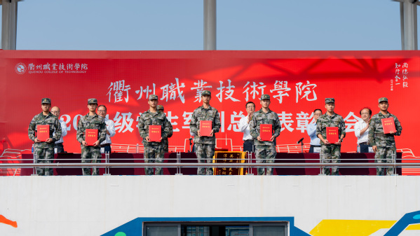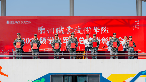 学校领导和承训部队领导为2024级学生军训工作先进集体和先进个人颁奖。