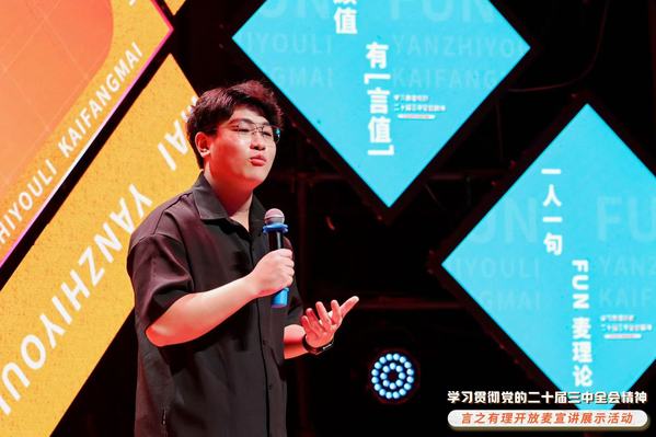 10月18日晚,全国优秀宣讲员浙江行“开放麦”宣讲展示活动在杭州余杭区举行。活动由浙江省委宣传部主办。大幕拉开,灯光亮起,在剧场式的沉浸空间里,来自全省12位选手轮番“开麦”。他们从自身经历出发,将干货满满的理论与生动活泼的“开放麦”结合起来,用接地气、冒热气的语言把理论讲明白,传递出满满的正能量。其中,我校郑德镇同学的宣讲给来自全国理论宣讲大咖们留下了深刻印象,并接受了《中国青年报》、浙江卫视的采访。