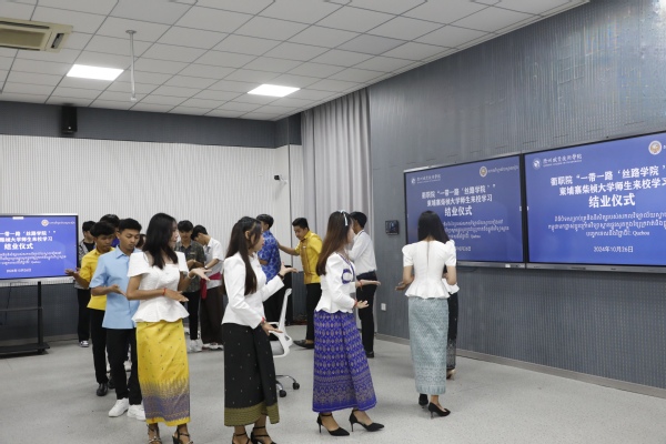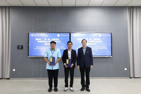 10月26日上午,我校举行柬埔寨柴桢大学师生来校培训结业仪式。柬埔寨柴桢大学老师CHOUN PHEAKDEY、CHOU MANITH及16位学生,浙江通天星集团股份有限公司常务副总经理兼总工程师徐祥进,柬埔寨柴桢省加利福家具材料有限公司副总经理兰莉,校党委书记徐须实出席,党委副书记何百通主持。