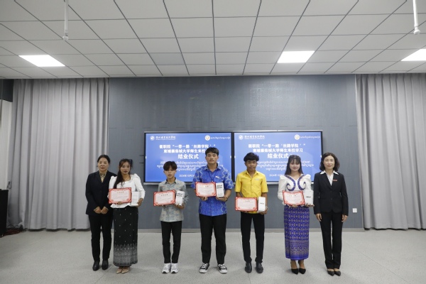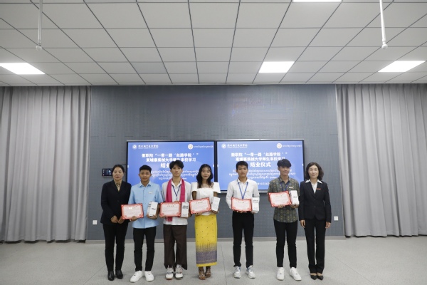 柬埔寨柴桢省加利福家具材料有限公司副总经理兰莉、信息工程学院副院长李杰为优秀学员颁发荣誉证书及奖品。