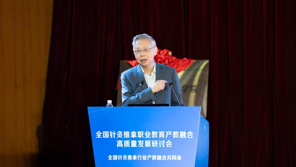 刘保延讲话。他希望共同体高标准打造“杨继洲针灸文化”品牌,助力针灸文化在世界的传播;高水平发挥全国针灸推拿行业产教融合共同体作用,扩大职业教育成果转化、加快针灸推拿产教高质量融合;高质量谋划好中医药康养复合型技术技能人才培养,为基层社区培养更多新质复合型的中医药康养人才,为针灸推拿行业注入新的活力和动能。