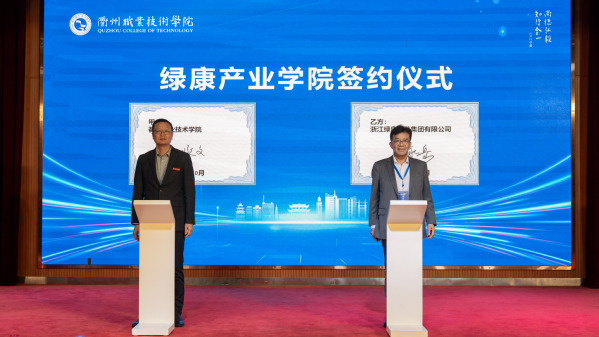 吕延文和卓永岳就共建绿康医养产业学院签约。