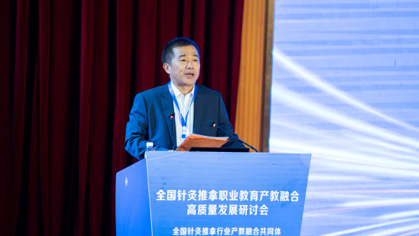 韩军作题为《中医药职业教育现状与产教融合实施路径》的主旨报告。