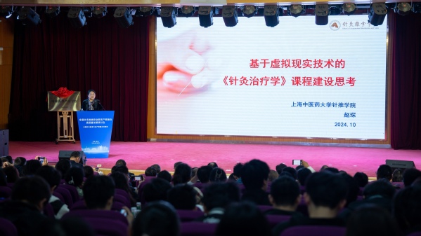 赵琛作题为《基于虚拟现实技术的〈针灸治疗学〉课程建设思考》的主旨报告。