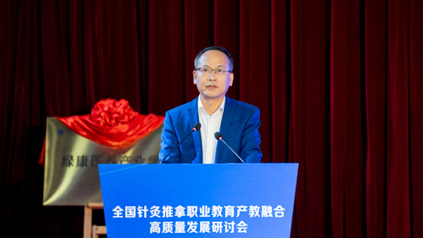 喻晓春致辞。他表示,中国针灸学会将全力搭建学术交流,科学研究,人才智库“三驾马车”,高质量推动共同体构建体系更全、质量更高、贡献更大的现代职业教育体系,助力打造中医药康养产业产教融合发展全国典范。