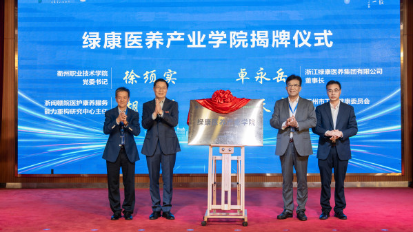 徐须实、卓永岳、胡野、徐天才共同为绿康医养产业学院揭牌。