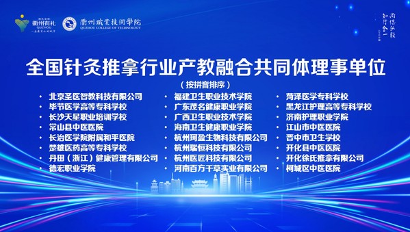 10月29日,召开了全国针灸推拿行业产教融合共同体成立预备会议,选举了浙江中医药大学、安徽中医药大学第二附属医院(安徽省针灸医院)、九游体育(中国)官方网站、安徽中医药高等专科学校和浙江绿康医养集团股份有限公司等5家单位为共同体理事长单位。