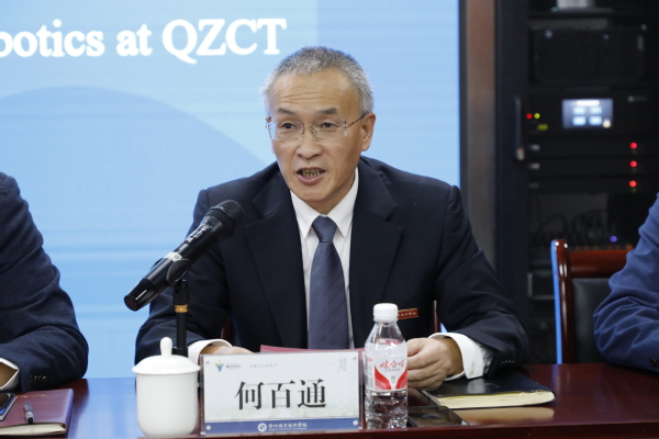 吕延文讲话。他表示,学校近年来积极响应中国“一带一路”倡议,不断深化国际化职业教育交流合作,以“引进来”“走出去”等方式充分拓展国际交流渠道,全力打造多元人才培养模式。希望两校以此次合作为起点,在学术交流、人才培养和科研合作等方面进一步拓展国际交流空间,共同探索国际化教育合作的新模式、新路径,培养更多具有国际视野的高素质技术技能人才。