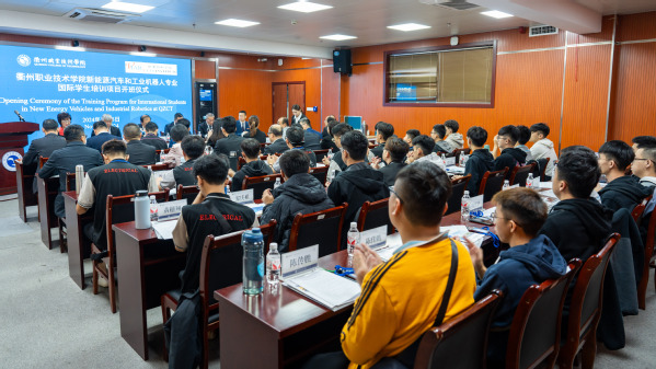 在机电工程学院,学校为25名留学生举行开班仪式。