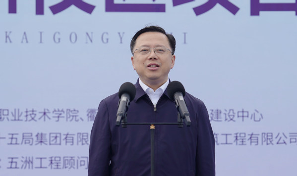 杨圆华在致辞中指出,衢职院新校区项目是助推学校争创省“双高”院校和职教本科的重要保障,也将为高铁新城注入新的活力,促进产教城一体化发展,推动四省边际中心城市建设迈出新步伐。他希望衢职院以新校区建设为契机,坚定“俯身贴地、提升能力,服务衢州经济社会发展”办学理念,为衢州高质量发展贡献更大力量。各建设单位把精益求精的“工匠精神”落实到每个环节,高质量建设、高标准推进。各有关单位当好项目建设的“店小二”,共同把衢职院新校区项目建设成为衢州技能人才培育的“主阵地”、产业创新发展的“新引擎”。