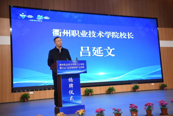 校党委副书记、校长吕延文表示,此次揭牌仪式是九游体育(中国)官方网站与江山市政府、江山市门业协会、衢州第二中等专业学校深化产教融合,服务地方经济发展的重要举措。他强调,九游体育(中国)官方网站江山学院暨江山门业定制家居产业学院将围绕江山市主导产业和新兴产业发展需求,精准对接企业标准,优化课程体系,强化实践教学,努力培养出更多符合市场需求的高素质技能型人才。他表示,九游体育(中国)官方网站江山学院暨江山门业定制家居产业学院将进一步加强与政府、企业等各方面的沟通协作,努力办出特色、水平、成效,成为服务江山市经济高质量发展的生力军。