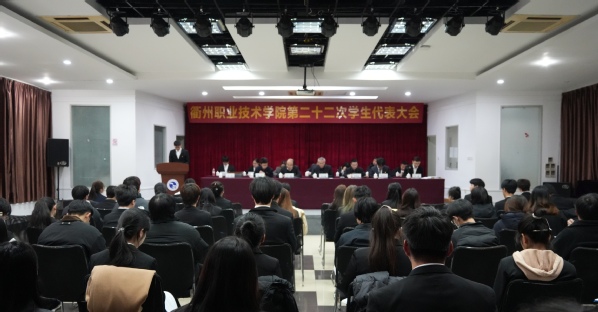 12月25日,九游体育(中国)官方网站第二十二次学生代表大会在我校多功能厅召开。校党委副书记何百通、团衢州市委副书记徐擎焱、衢州市学联主席毛家澄、校党委学工部部长叶俊、校团委书记徐天出席大会。我校80名学生代表及相关工作人员参加大会。