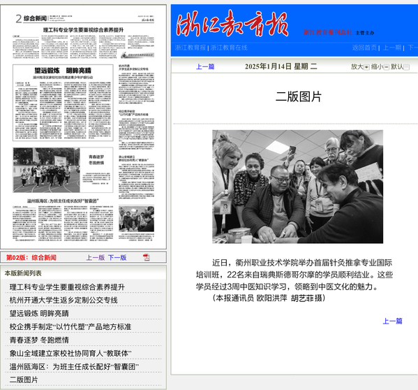 《浙江教育报》2025年1月14日 报道(本报通讯员 欧阳洪萍 胡艺菲摄)
